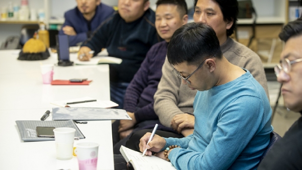 创新基地2020-2021年度项目中,有四位非遗传承人经由“BMW中国文化之旅”辽宁探访遴选而出,分别为辽宁传统琥珀雕刻技艺国家级非物质文化遗产传承人陈焕升、辽宁传统锡雕技艺非遗传承人石岩、松花石雕刻技艺第五代传承人冯月婷和阜新玛瑙雕刻技艺非遗传承人杨帆。此外,在2020年疫情肆虐武汉之后,项目还特别资助来自湖北省的楚式漆器髹饰技艺代表性非遗传承人邹传志和楚地斫琴技艺非遗传承人万翔进入创新基地,助力湖北非遗传承人。经过为期三个月的理论学习、实地考察及作品创作设计交流研讨,由清华大学美术学院鲁晓波老师、王晓昕老师、杨佩璋老师、刘润福老师、宿志鹏老师及马文甲老师组成的清华大学美术学院专家导师团队,以一对一“做中学”的模式与六位非遗传承人共同开发设计了一系列非遗文创品,并于2021年底发布。